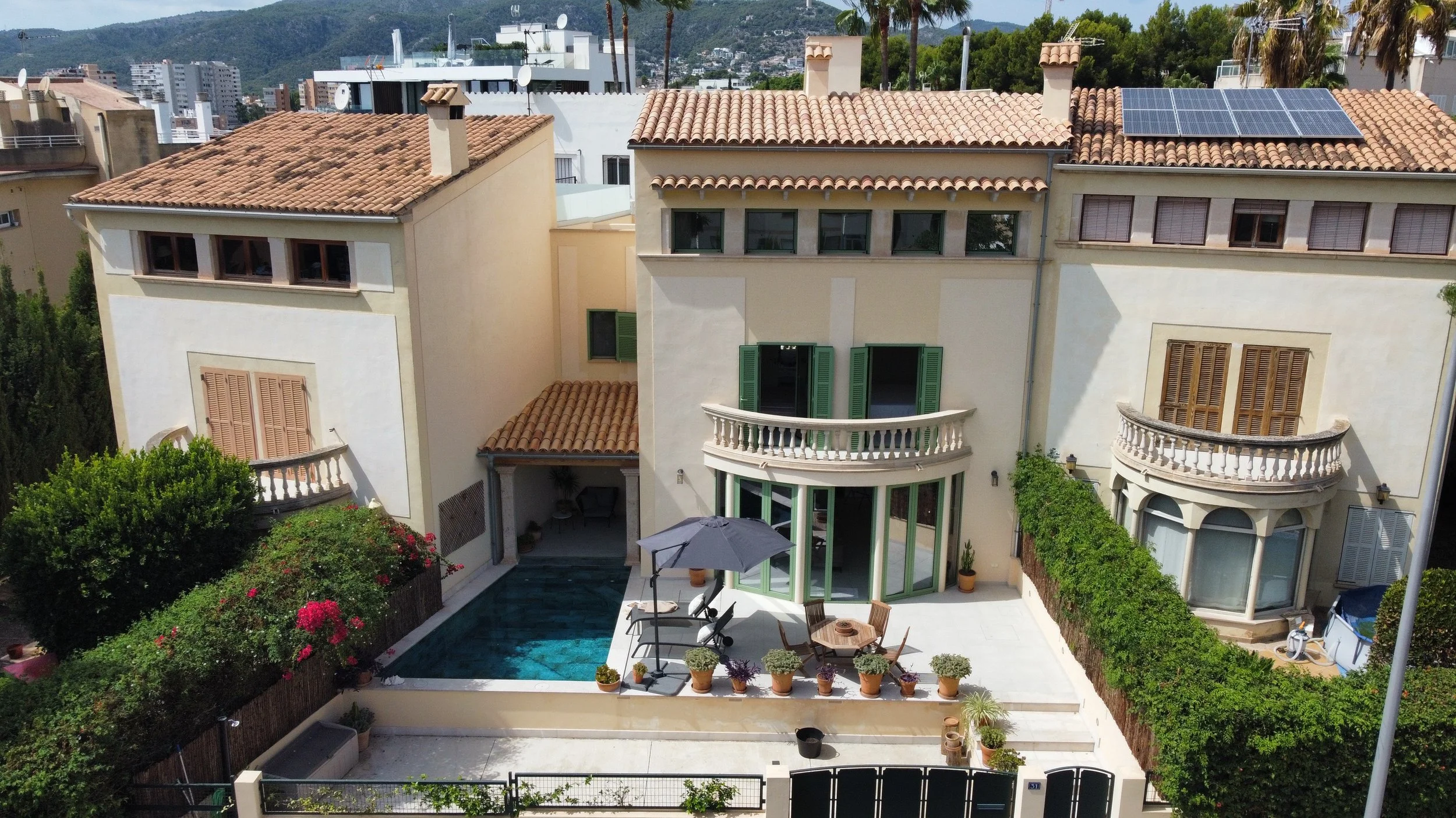 This unique townhouse on prime location on a quiet street in Bonanova is designed by a talented architect. Function, open planning and stunning details have been kept throughout the entire property. Entering the property you’ll be greeted by a lush, large terrace where you can enjoy sunny days by the pool or dinners under the stars. The large floor-to-ceiling windows from the exterior to the interior can be fully opened, creating a wonderful indoor-outdoor living space.