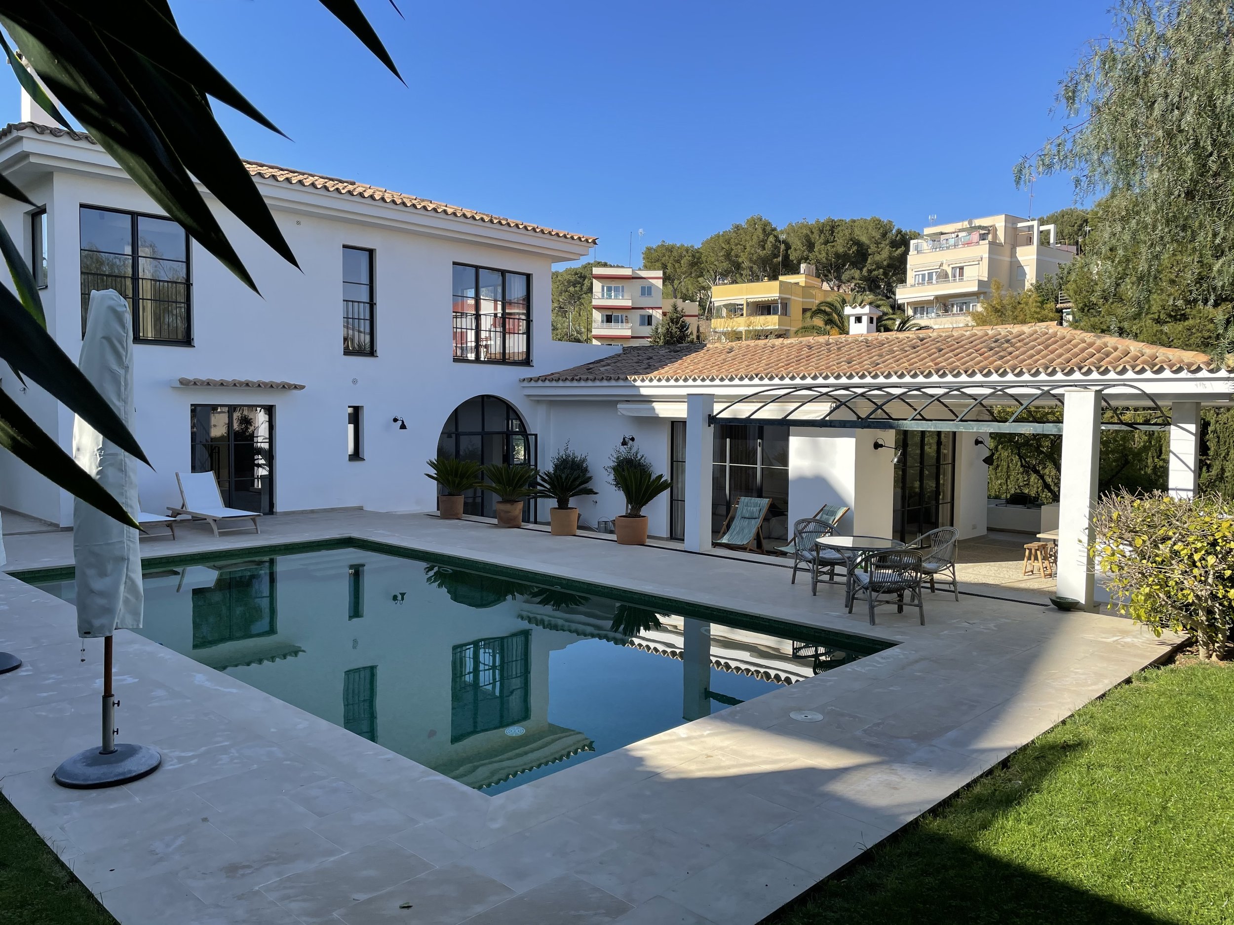 Set in the sought-after area of Pueblo Español, this 250 m² residence blends Mediterranean architecture with Scandinavian design. Originally built in 1981 and renovated in 2019, the home balances character with modern living.